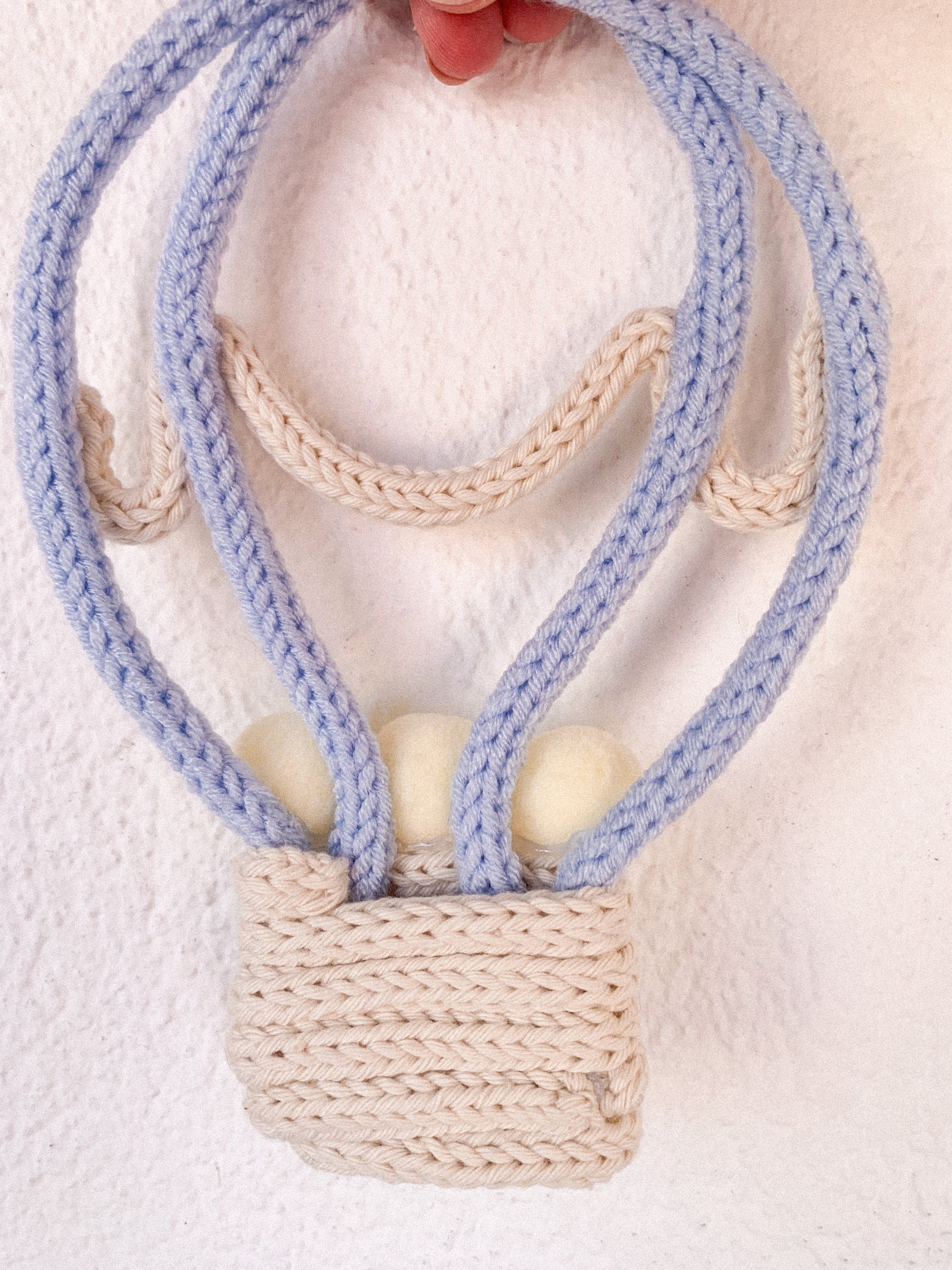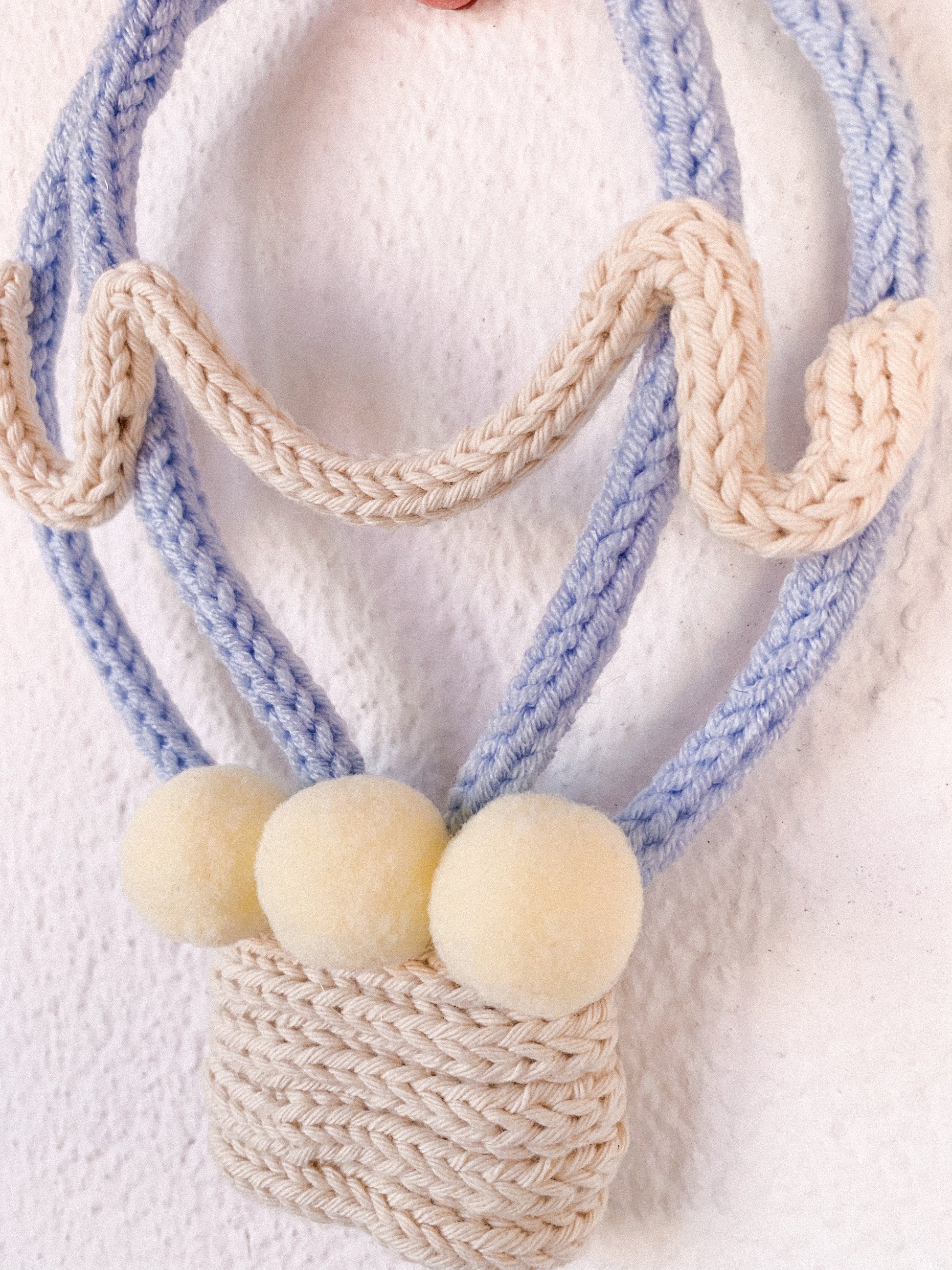 Com um design leve e sonhador, o balão de ar quente em tricotin transmite uma sensação de liberdade, aventura e doçura.