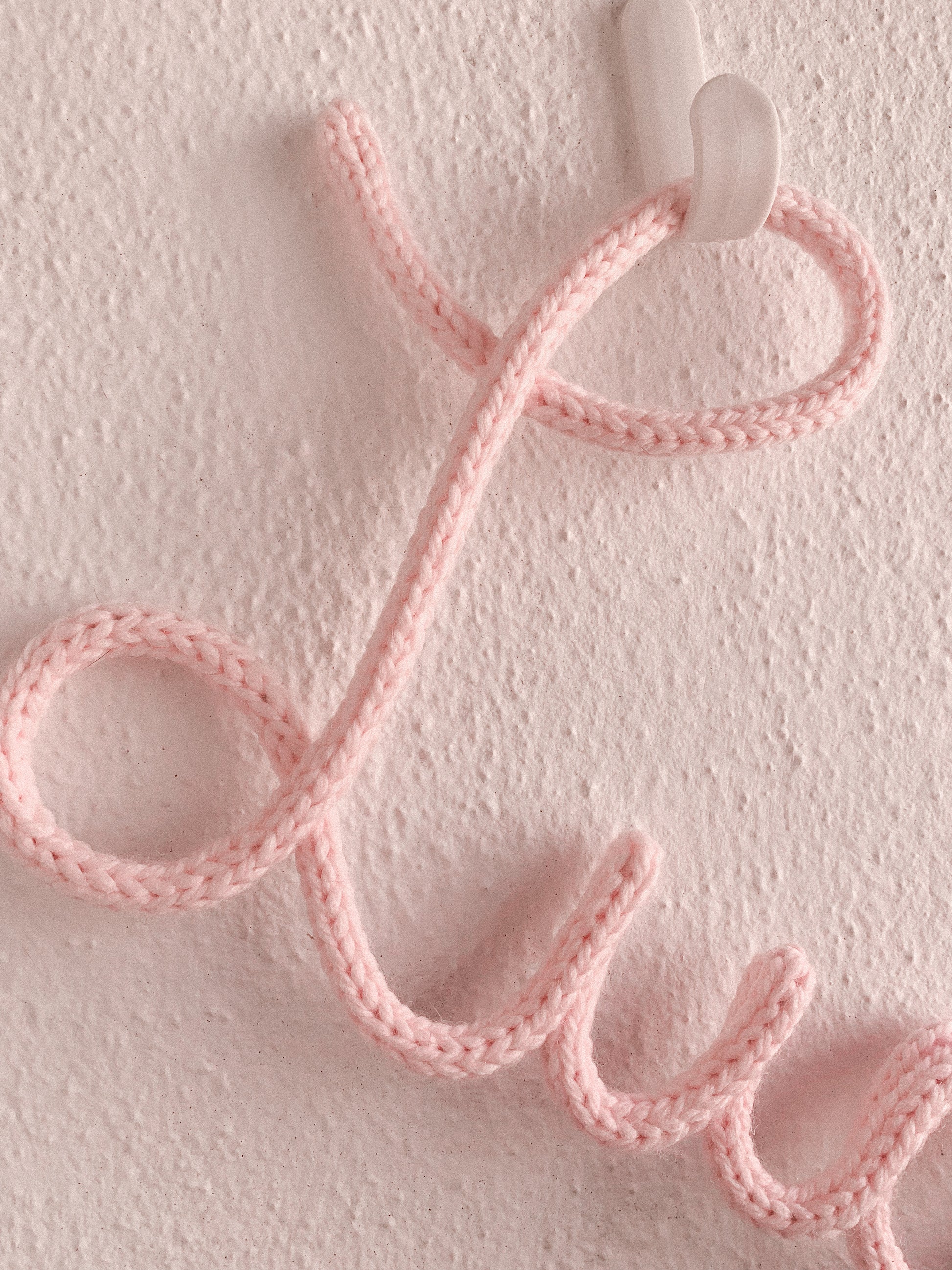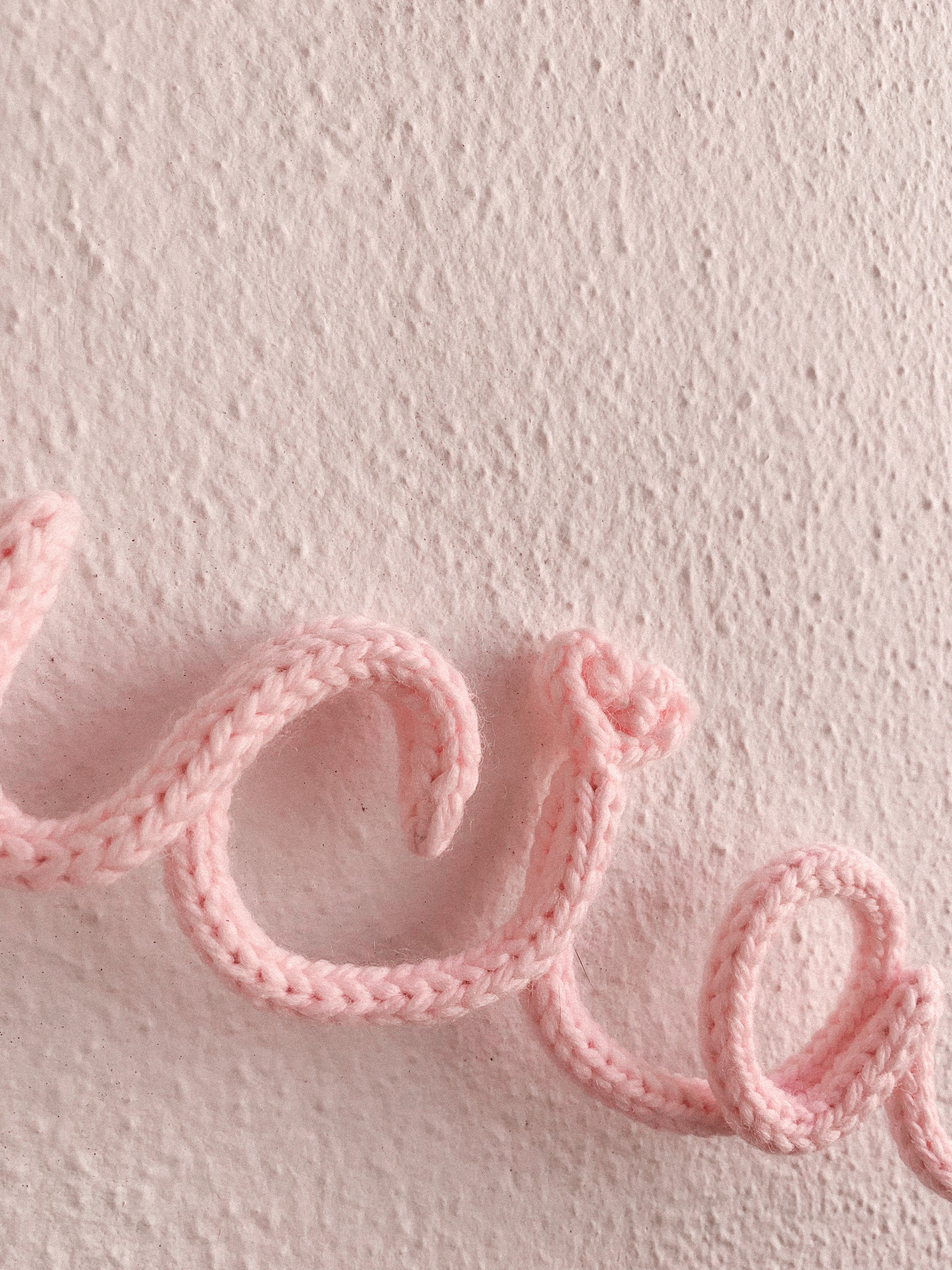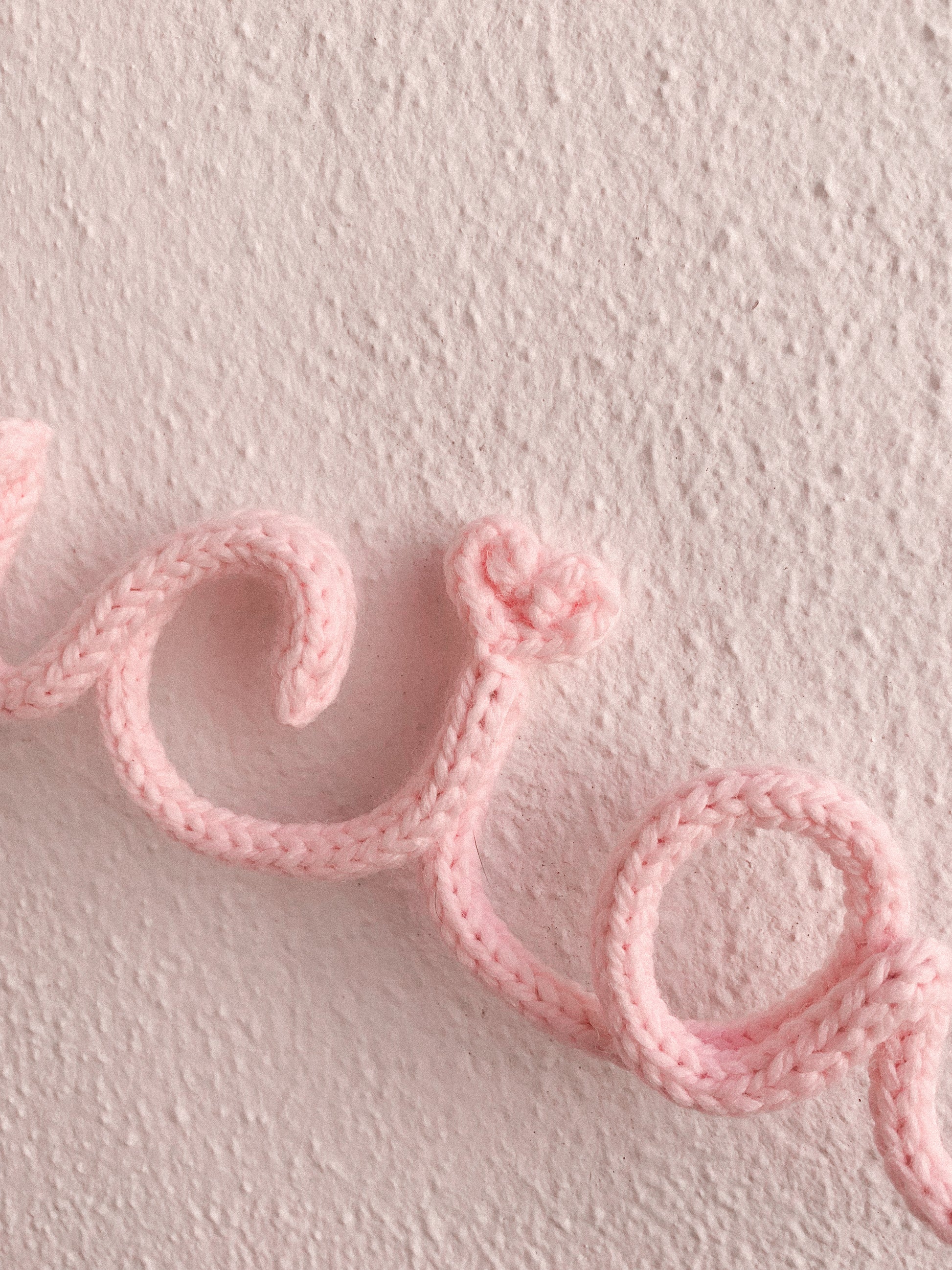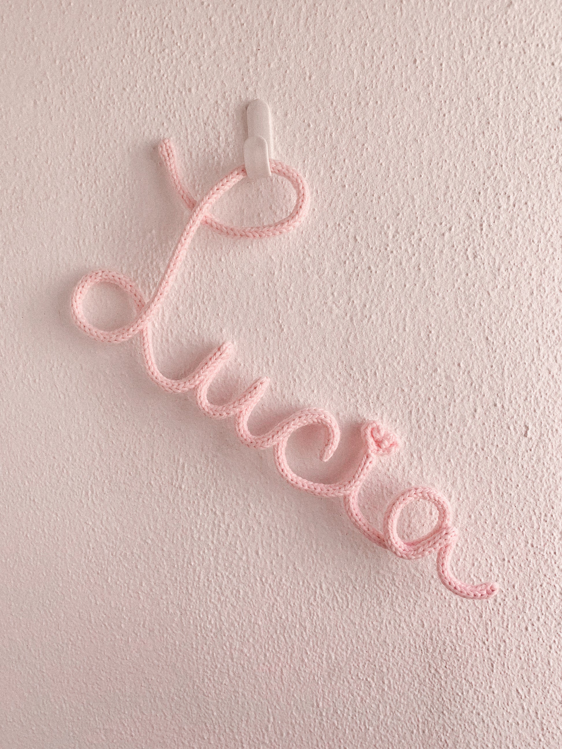 Transforma qualquer ambiente com a doçura e o charme do nome Lucia em tricotin rosa bebé.